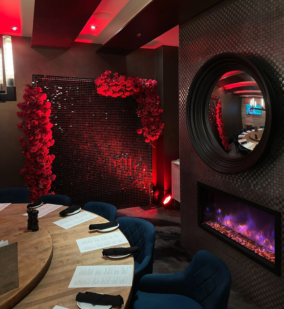 Drapes backdrop red roses florals